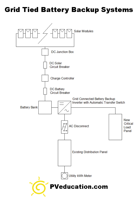 Posted Feb 15, 2025 By PVeducation.com 1 min read Grid Tied Battery Backup Solar System Contents Grid Tied Battery Backup Solar System Grid Tied Battery Backup Solar System System Type System Type Battery This post is licensed under CC NC ND 4.0 by the author. Share